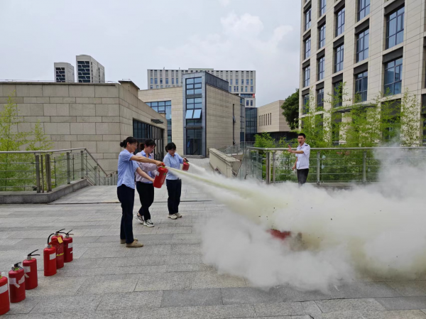 上午10點(diǎn)30分,演練活動(dòng)正式開始。在統(tǒng)一組織下,員工們捂鼻、彎腰,緊張、有序的沿著安全通道迅速轉(zhuǎn)移到辦公樓旁空地。隨后教官講解火災(zāi)現(xiàn)場的應(yīng)急處置方法以及滅火器的使用原理并演練了滅火器的操作規(guī)范。員工們認(rèn)真學(xué)習(xí),積極參與,體驗(yàn)現(xiàn)場滅火的過程,按照滅火的步驟和方法,將燃起的火焰成功撲滅