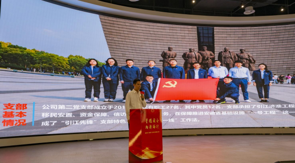“2018年農(nóng)歷臘月二十二,臨近農(nóng)歷小年,在高新區(qū)三崗村部,由于引江濟淮蜀山樞紐工程路線發(fā)生調(diào)整,我們接到征遷任務(wù)通知,要求立即做好13個村民組整體搬遷。支部黨員立即深入現(xiàn)場會同村委召開緊急征遷動員會,挨家挨戶做工作,協(xié)助群眾租房搬家,搬遷工作從大年初七正式開始,到正月十五200余戶群眾全部搬離完畢,蜀山樞紐按照既定工期實現(xiàn)順利開工........”第二黨支部書記張亮以“建強紐帶 聚合力量 建功一號工程”為題,演示了支部在引江濟淮工程建設(shè)、征地拆遷、移民安置、資金保障、信訪穩(wěn)定等重點任務(wù)中如何充分發(fā)揮支部戰(zhàn)斗堡壘作用和黨員先鋒模范作用的特色做法;展示了支部“引江先鋒”支部品牌、“四個在一線”工作法,形成以“小”支部干好“大”工程的實踐經(jīng)驗。